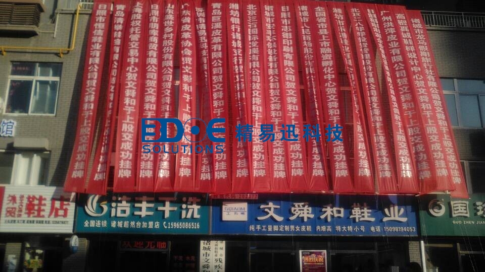 2014年12月1日上午9點(diǎn)文舜和鞋業(yè)有限公司在上海股權(quán)托管交易中心成功掛牌(股票代碼:202377),文舜和鞋業(yè)是一家有著悠久歷史的皮鞋制造公司,傳承傳統(tǒng)手工工藝,生產(chǎn)的高端手工皮鞋,為國內(nèi)手工鞋履的代表。
