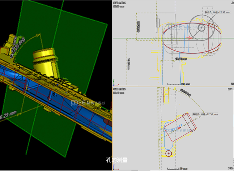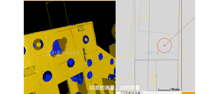 6.切面測(cè)量,2D的測(cè)量,支持在任意X,Y,Z方向上去切面轉(zhuǎn)換為一個(gè)測(cè)量平面,可以直接在空間和平面上測(cè)量角度,長(zhǎng)度,直徑等
