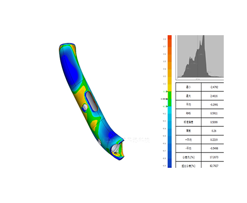 通過RY-H400藍(lán)白光三維掃描儀獲取不規(guī)則彎管的三維點云數(shù)據(jù),與原數(shù)模進(jìn)行全方位尺寸檢測比對,用直觀易懂的三維比較結(jié)果來顯示兩者的差異,并自行生成對應(yīng)的產(chǎn)品三維檢測報告。