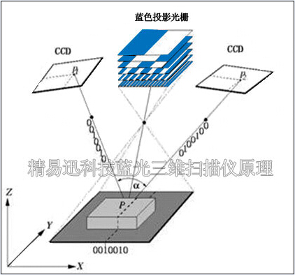 (圖:藍(lán)光三維掃描儀投射藍(lán)色光柵)