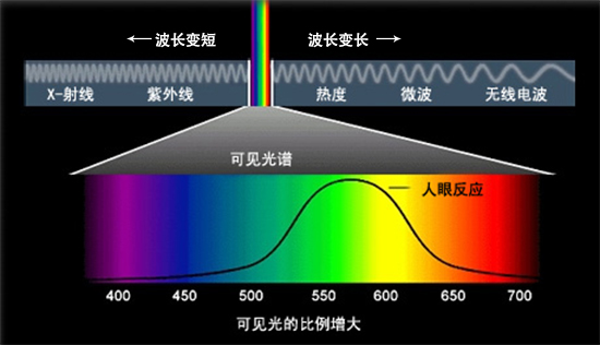 三維掃描儀所使用的結(jié)構(gòu)光目前可分為白光與藍(lán)光技術(shù),白光可以稱(chēng)之為可見(jiàn)光;藍(lán)光屬于白光的一種;如下圖所示: