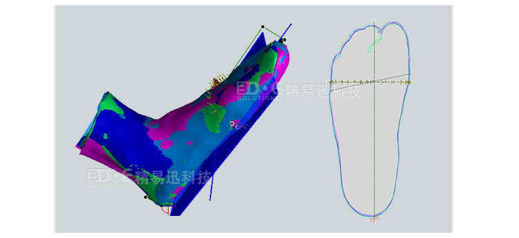 可以截取測量斷面 生成二次B樣差值曲線, 為未來的更好的鞋楦比對提供數(shù)據(jù)