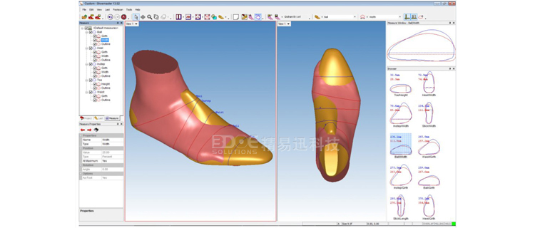 3D量腳定制鞋是基于計算機三維視覺的定制,就是利用腳型三維掃描儀掃描人體腳型,得到與人體腳型1:1的三維數(shù)據(jù),再利用shoemaster制鞋軟件對這個三維腳形文件進行測量,各種測量。在軟件里對選定的鞋楦和腳形的STL進行三維對比,找到和定制鞋客戶腳型一致的鞋楦,如果沒有找到合適的鞋楦軟件也可以根據(jù)客戶腳型STL數(shù)據(jù)做出修改鞋楦的建議,做出客戶獨有的鞋楦,根據(jù)客戶的鞋楦定制鞋。