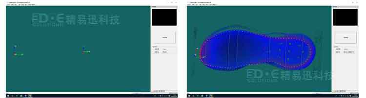 可以和傳送帶傳感器編碼同步,確保準(zhǔn)確還原產(chǎn)品外形特征,采用GPU加速,快速智能識(shí)別鞋底的軌跡