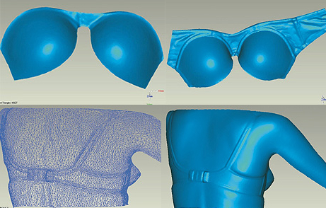(1) 可以通過對內(nèi)衣點(diǎn)云數(shù)據(jù)進(jìn)行分析處理,進(jìn)而得到內(nèi)衣罩杯的所有尺寸數(shù)據(jù),對其進(jìn)行修改、設(shè)計(jì),并可獲得量身定做的新產(chǎn)品和新樣式。