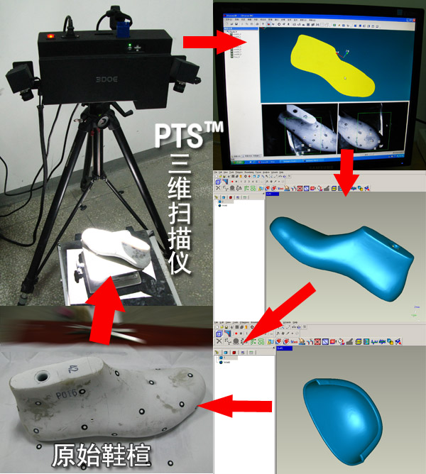 應(yīng)用描述:采用 PTS系列三維掃描系統(tǒng)可以快速的對鞋楦,鞋底進行掃描,獲取三維掃描數(shù)據(jù),也可以迅速捕捉紋理信息, 輔助用戶進行CAD/CAM設(shè)計。