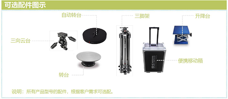 可選配件: 專業(yè)三角架,立柱、自動轉(zhuǎn)臺、手動轉(zhuǎn)臺。
